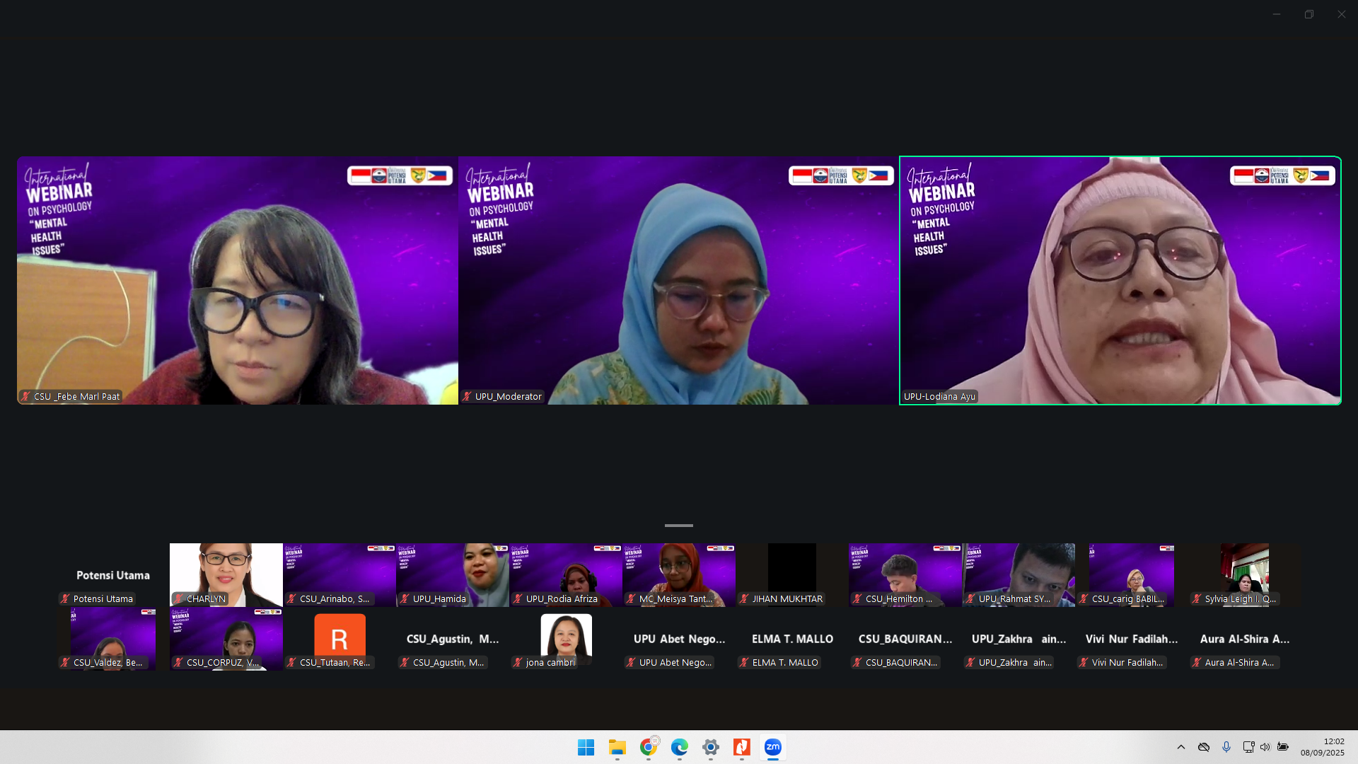 Webinar dibuka dengan sambutan hangat dari perwakilan kedua institusi. Dekan Fakultas Psikologi UPU dalam sambutannya menekankan pentingnya kolaborasi internasional semacam ini. “Kerja sama dengan Cagayan State University bukan hanya tentang pertukaran budaya akademik, tetapi juga tentang menyatukan perspektif untuk mencari solusi atas masalah global, khususnya kesehatan mental. Webinar hari ini adalah bukti bahwa kepedulian terhadap kesehatan jiwa tidak mengenal batas negara,” ujarnya.