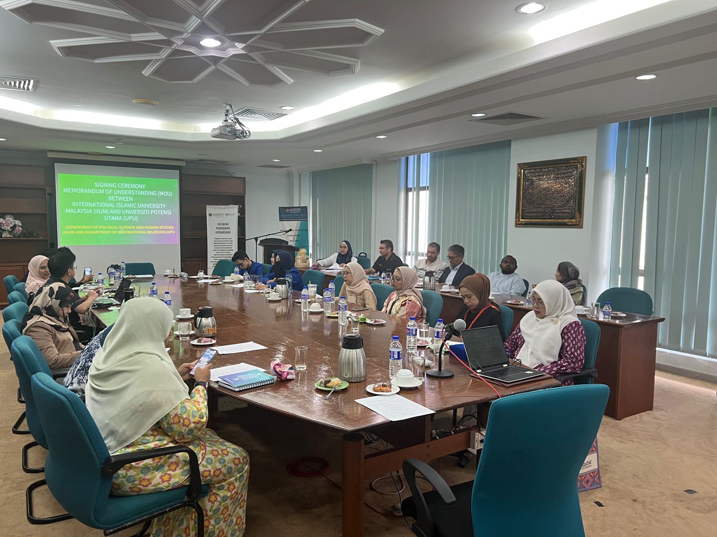 Di IIUM, rombongan disambut dengan hangat oleh Dean AHAS KIRKHS, Prof. Dr. Hafiz Zakariya, dan Head of Department Political Science, Assoc. Prof. Dr. Norhaslinda Jamaiudin. Mahasiswa HI UPU berkesempatan melakukan tur kampus (campus tour) yang dipandu oleh mahasiswa Perhimpunan Pelajar Indonesia (PPI) IIUM, serta mengikuti perkuliahan tentang "Islamic World and Civilization" yang dibawakan oleh Dr. Nur Adillah Omar.
