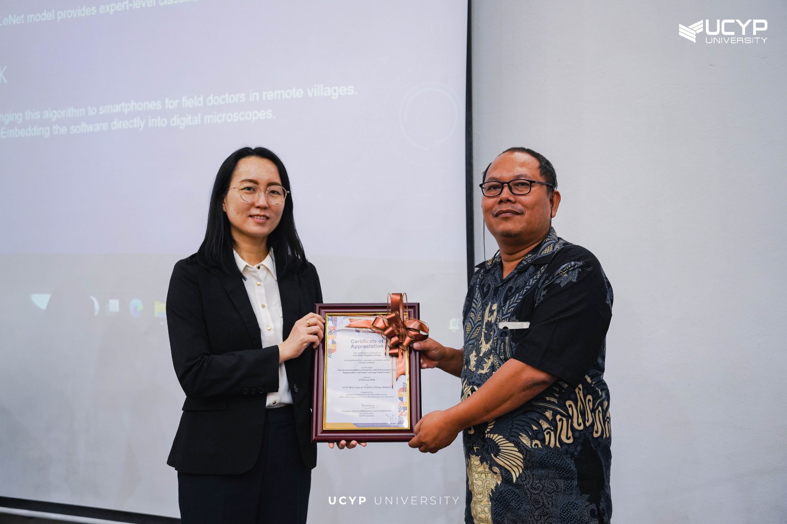 Program Community Services dan guest lecturer ini mengangkat topik “Revolutionizing Malaria Diagnosis: AGCS-Enhanced Image Segmentation and Deep Learning Classification”, yang berfokus pada pemanfaatan teknologi AI dan deep learning dalam mendukung diagnosis penyakit malaria secara lebih akurat dan efisien. Kegiatan ini diselenggarakan oleh UCYP dan melibatkan partisipasi aktif dosen serta sivitas akademika dari kedua institusi.