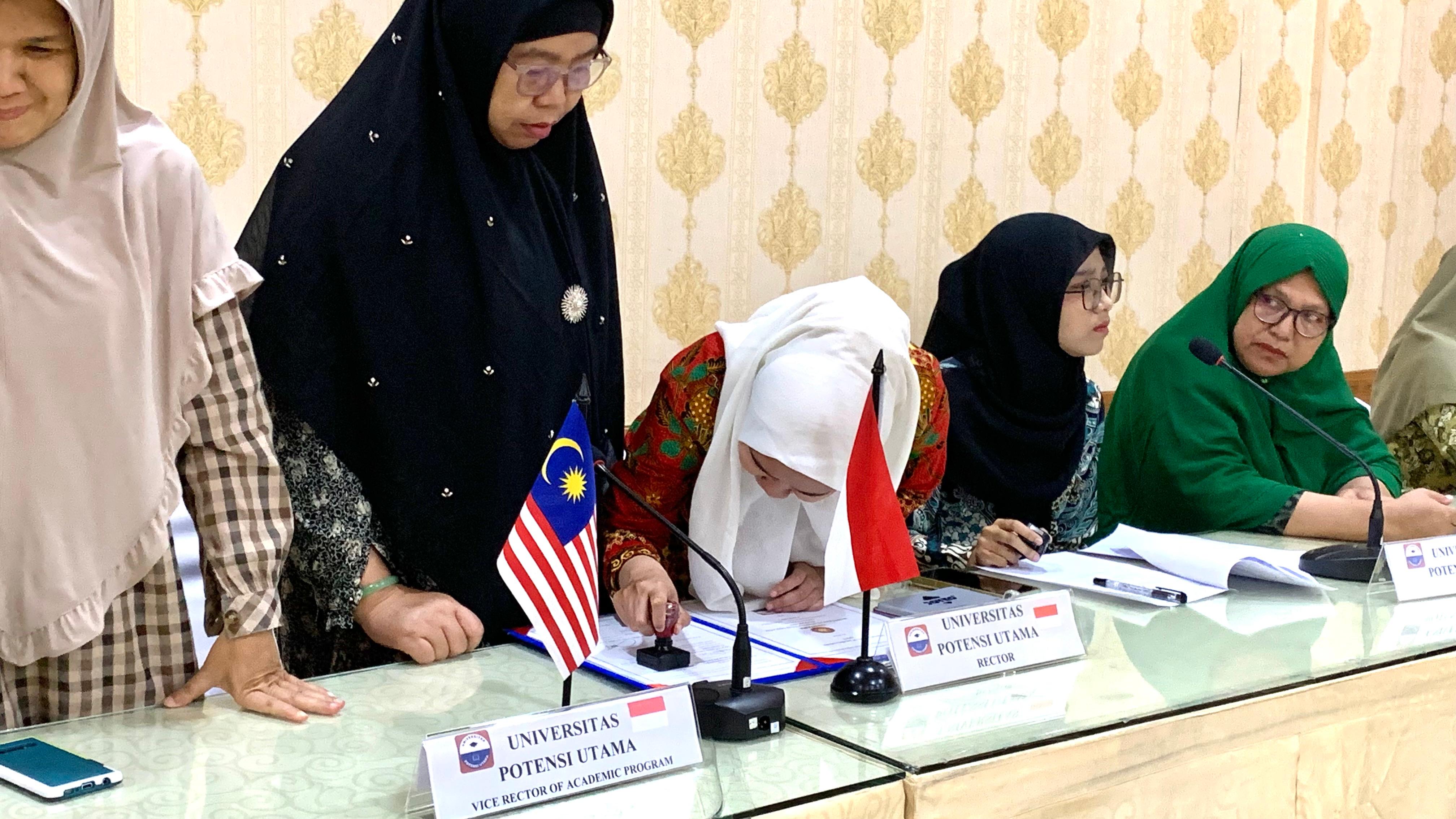 The ceremony was attended by Deputy Vice Chancellor of Academic & International Affairs from UniSHAMS along with university officials, as well as the Rector of Universitas Potensi Utama and her delegation. The event began with an opening prayer, the national anthems of Indonesia and the Malaysia, followed by the screening of university profile videos from both institutions.