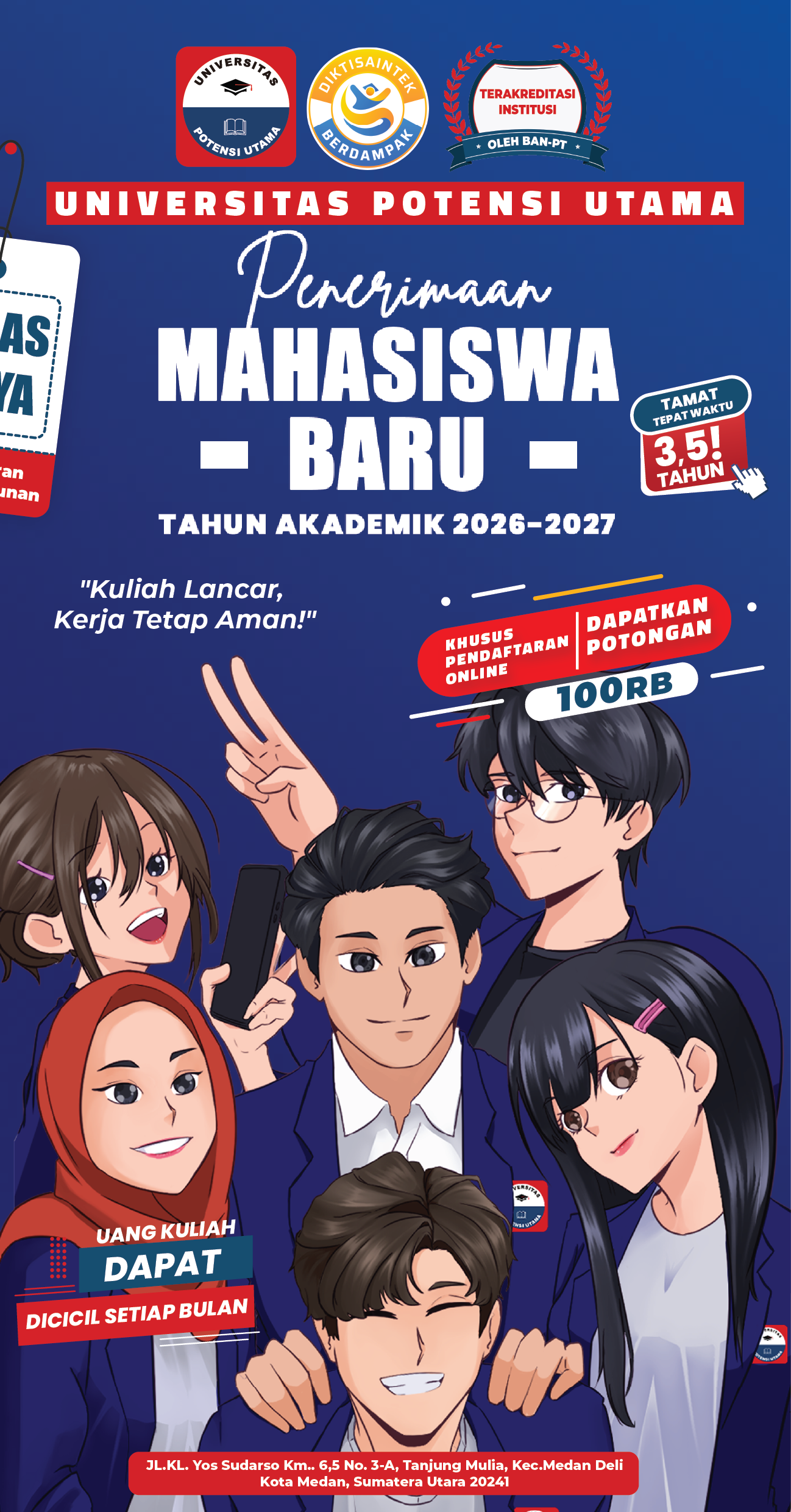 Pimpinan dan sivitas akademika Universitas Potensi Utama berkomitmen menyelenggarakan Pendidikan, Penelitian, dan Pengabdian kepada Masyarakat serta menyediakan sumber daya yang berkualitas sesuai dengan perkembangan Ilmu Pengetahuan, Teknologi, dan Seni dengan melakukan perbaikan terus menerus dalam sistem manajemen.